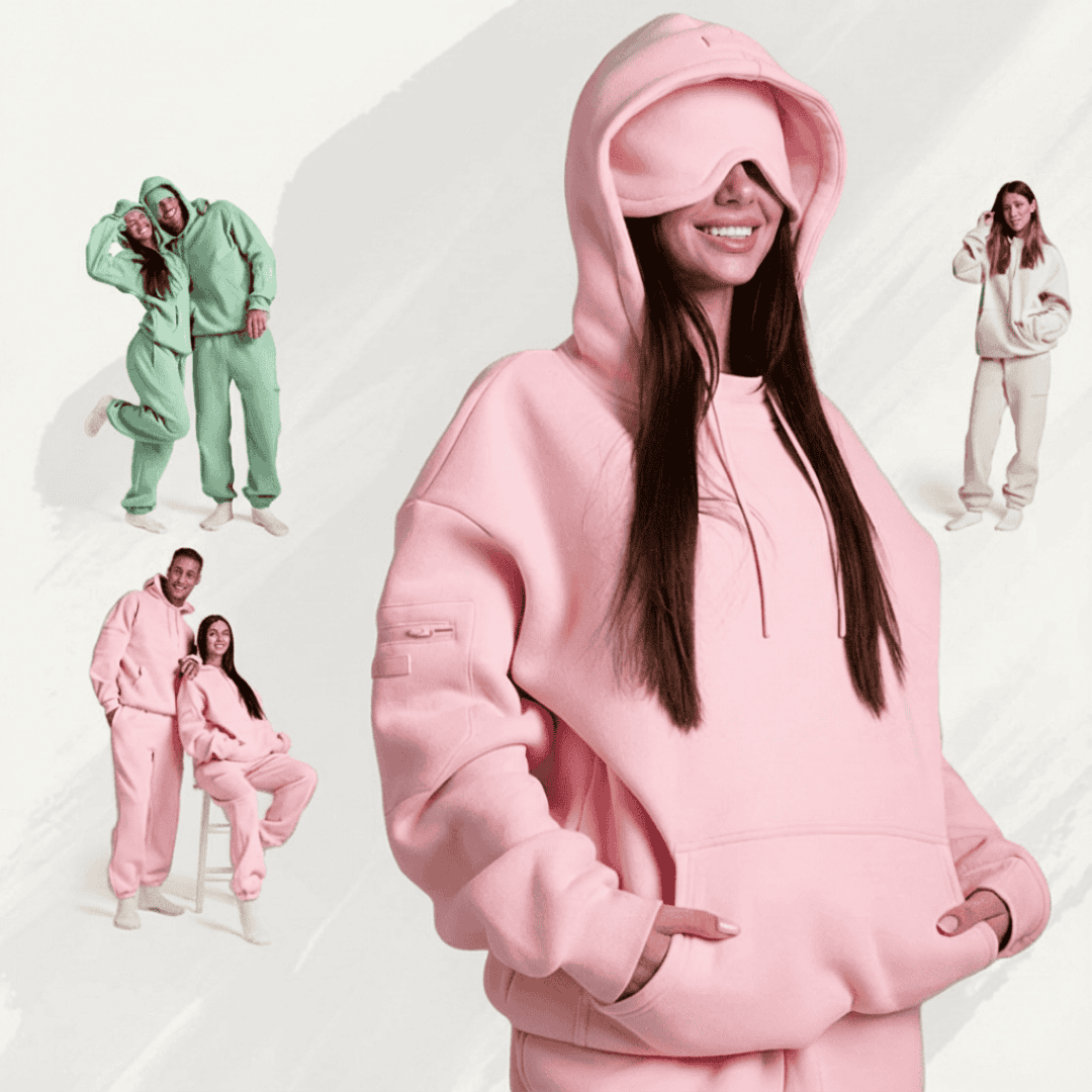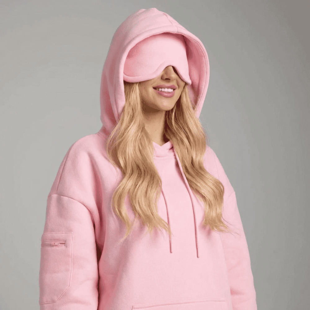 This hoodie stands out with its oversized design and built-in eye mask, offering both comfort and functionality. It’s perfect for busy lives, allowing you to transition seamlessly between activities while also providing a unique way to relax on the go.
