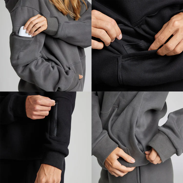 Embrace effortless style with this oversized pullover, blending chic design and practical features for ultimate comfort. Perfect for travel, lounging, or errands, it’s your stylish companion for all occasions.